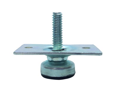 Os pés niveladores antiderrapante possuem um parafuso de aço galvanizado para sua fixação, caso seja necessário também podem ser fixados com bucha de polipropileno injetado ou placa de fixação de aço galvanizado.