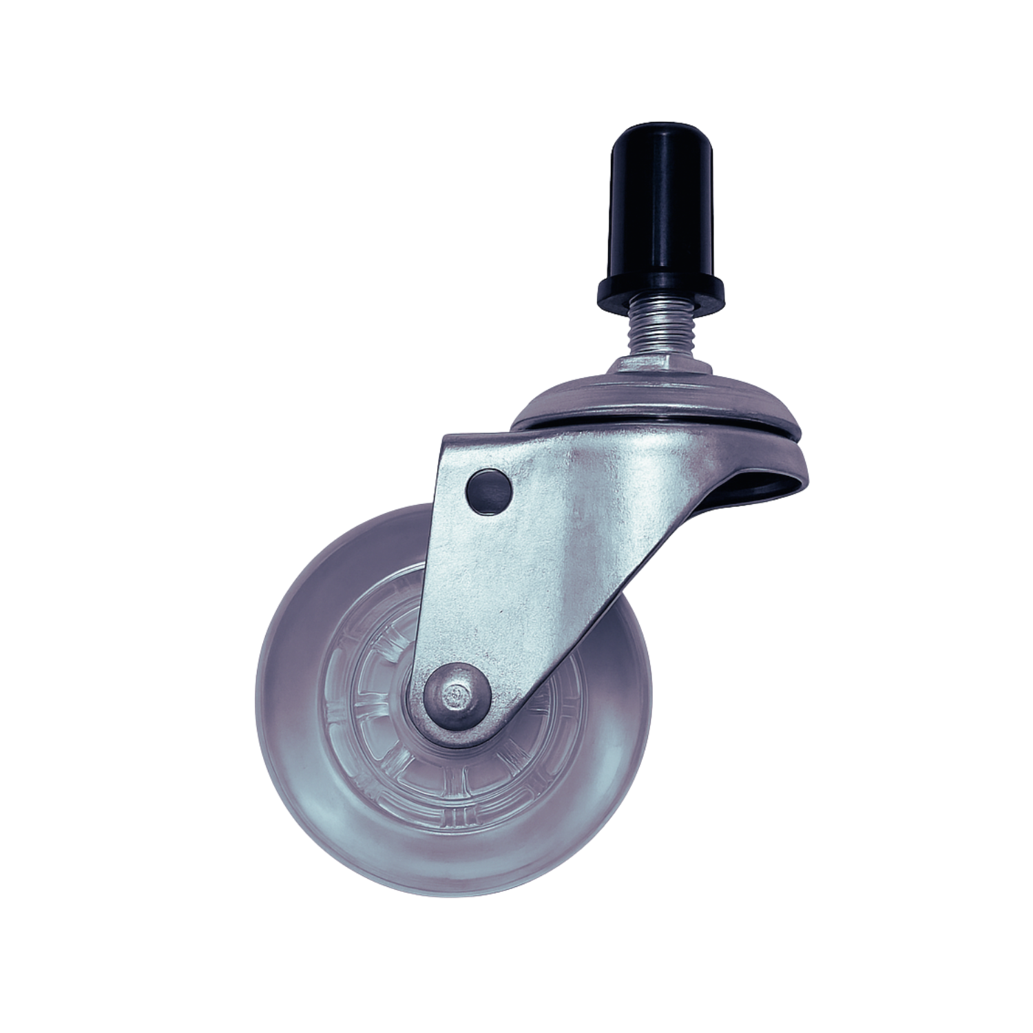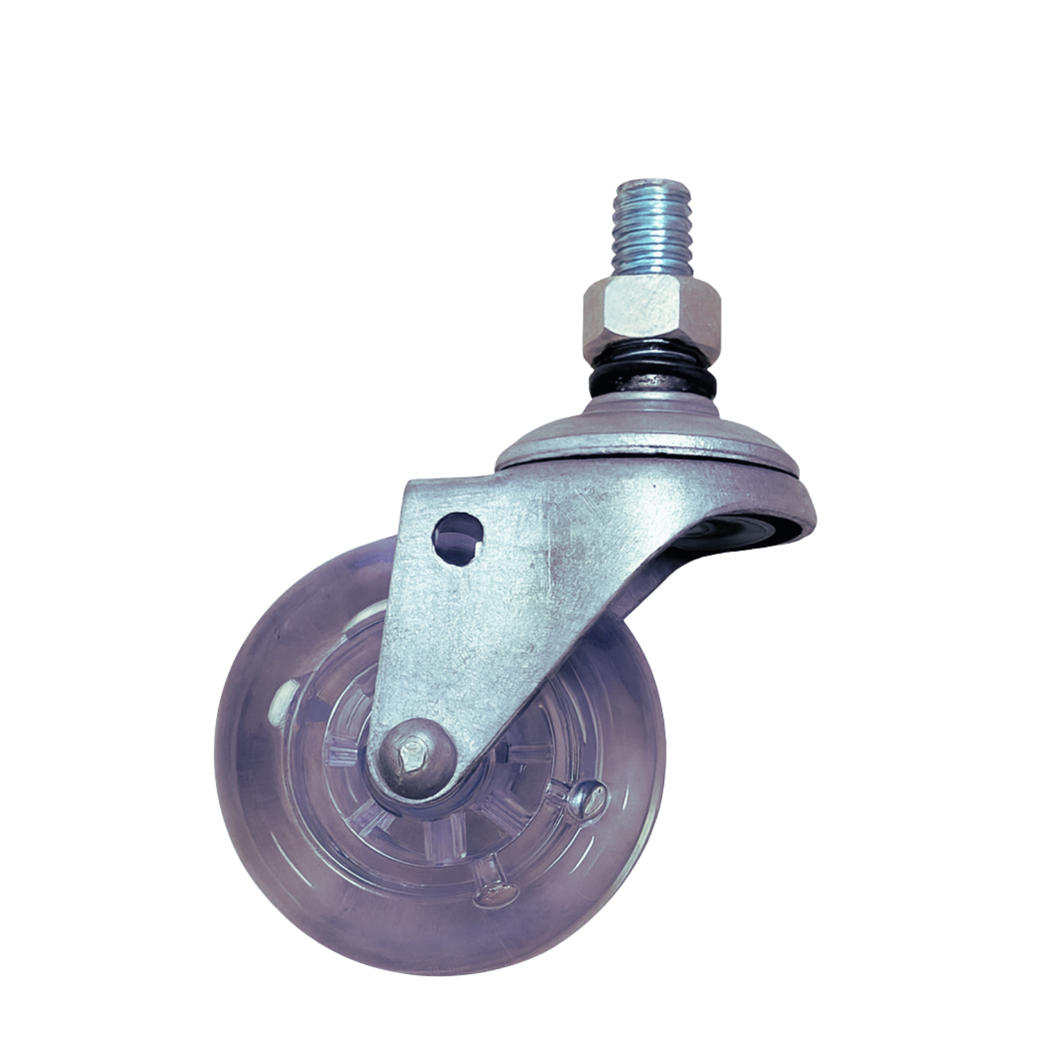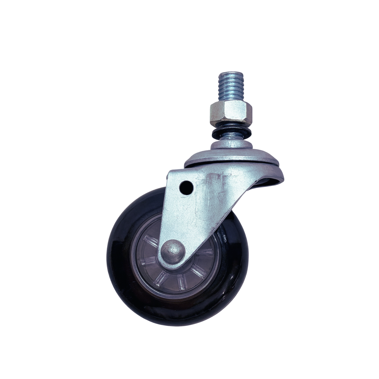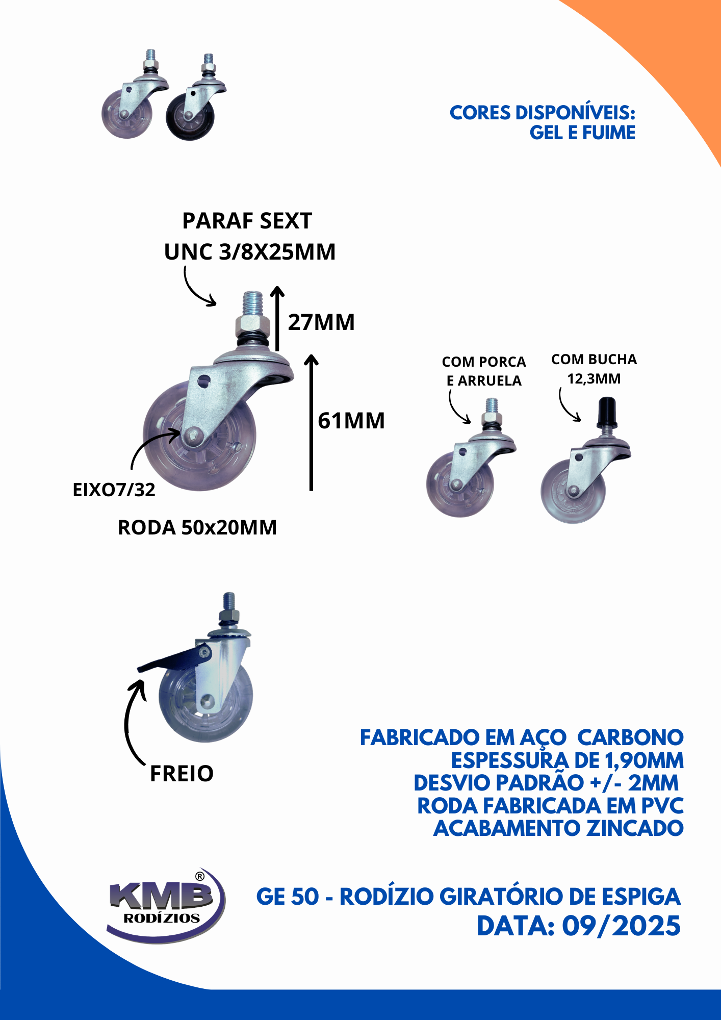Fabricado em chapa de aço com rodas de 50mm e parafuso UNC de 3/8x25mm. Esta rodinha é aplicada principalmente à suportes, displays, bancadas, estantes, cenários e móveis diversos, com ótima qualidade, apresenta roda antirrisco, que protege o piso, com fácil instalação e boa mobilidade.